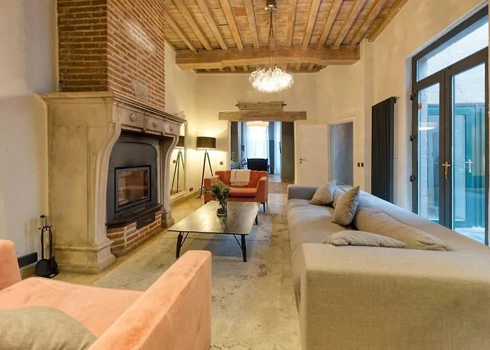 Authentic Belgian Home, Downtown med 4 sovrum har arbetsbord samt sten eldstad. Det finns också plattskärms-TV med satellitkanaler.